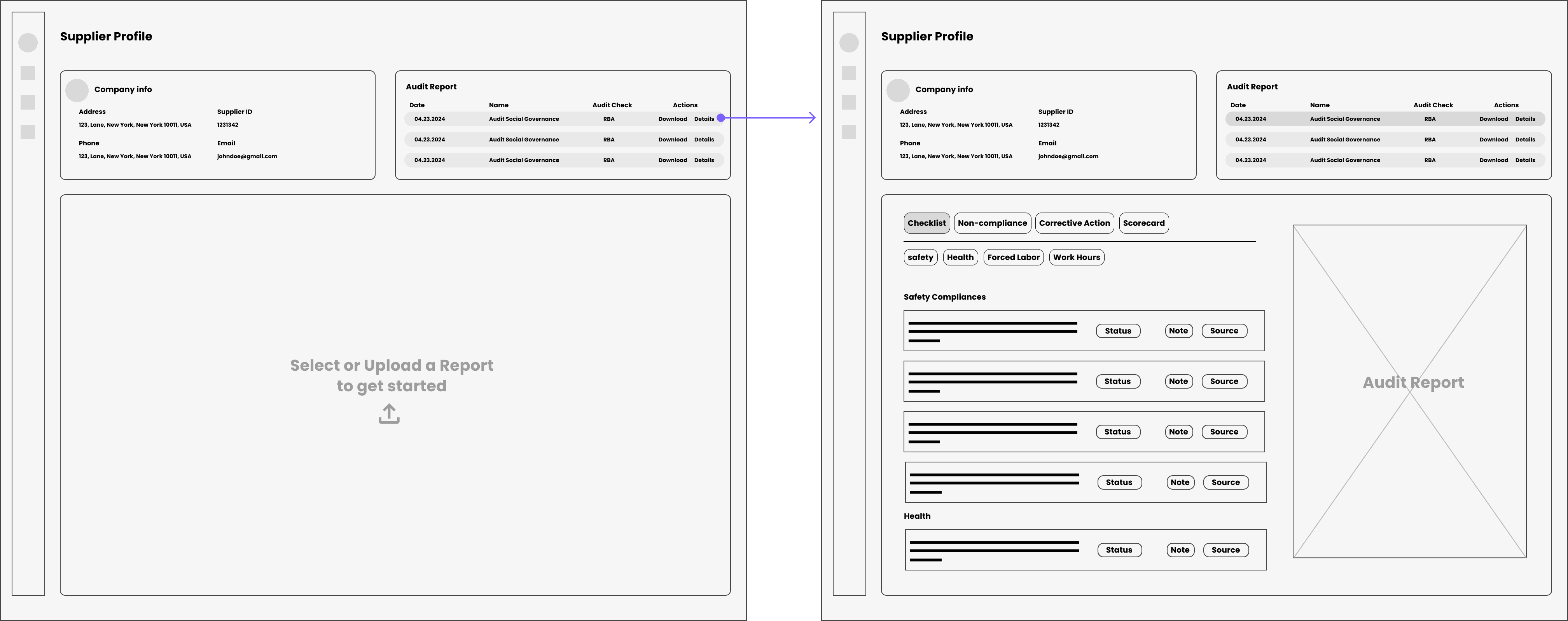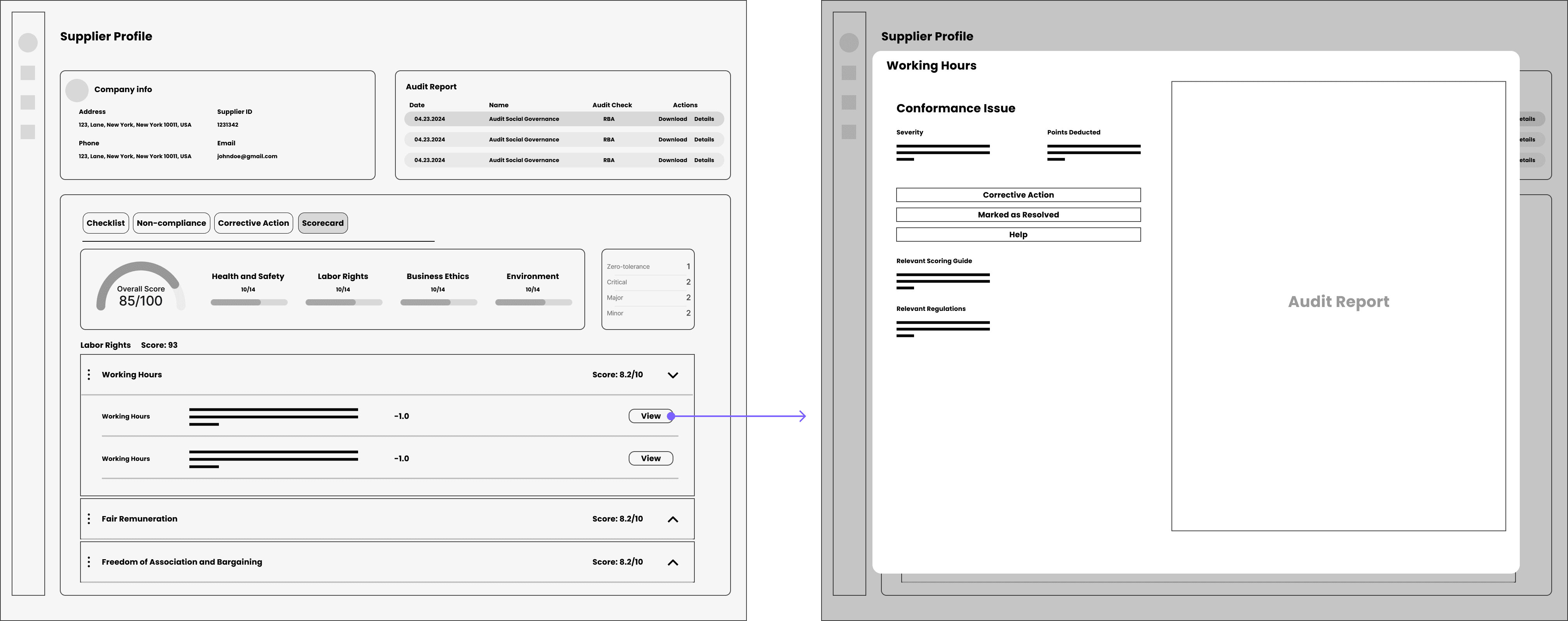After aligning with engineering, we restructured the system architecture to clarify the purpose of each tab and reduce redundancy. We grouped all audit-related insights under a single Audit History tab to address user feedback about repeated elements. We also moved the report overview to the forefront, helping users quickly understand which report they’re viewing while creating a more consistent experience—allowing them to drill into conformance items via a modal rather than navigating away.