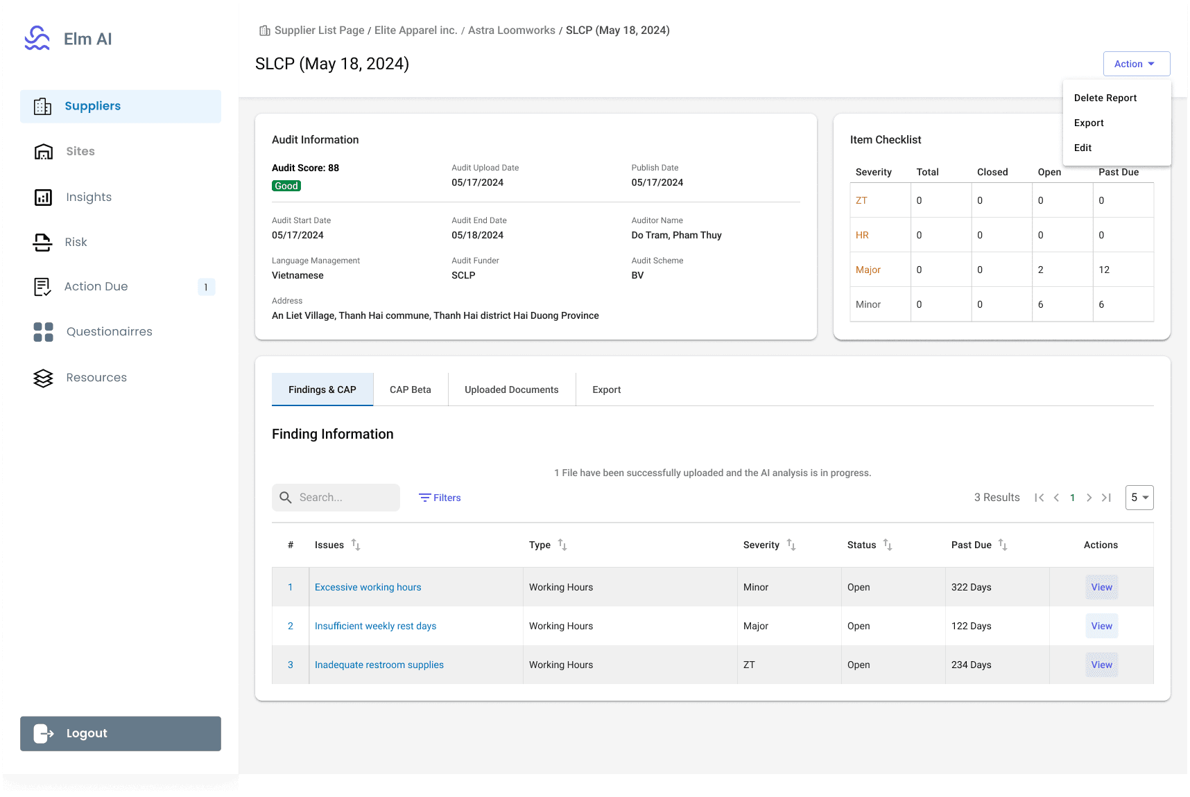 “I have multiple audits coming in from different suppliers, and it’s hard to keep track of all the non-compliance items without digging through several PDFs.”