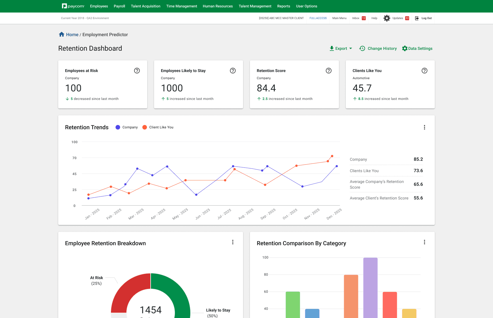 Paycom Analytics Retention Dashboard / Employee Details Page