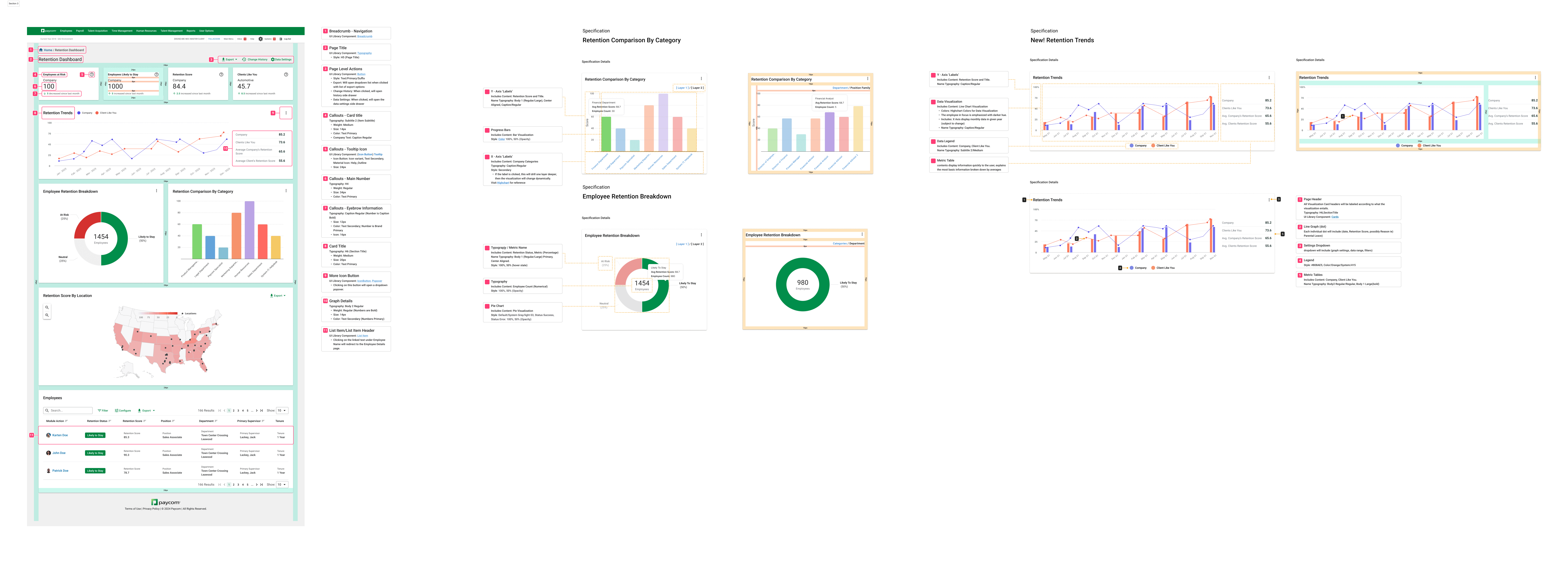 During handoff, I created a spec sheet outlining interactions and element measurements to support developers. This aligned with our Paycom design library and Highcharts’ visual standards for consistency.
